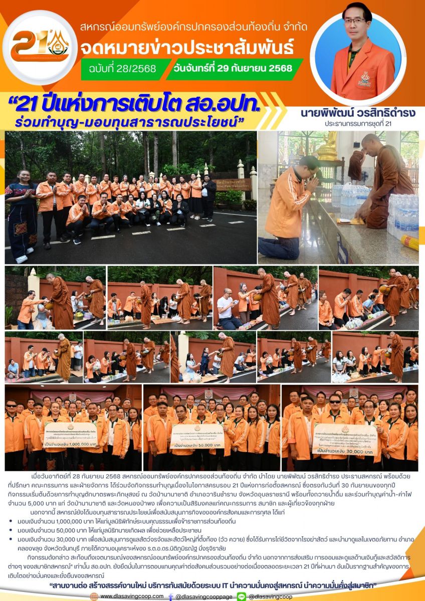 [ข่าวกิจกรรม] ครบรอบ ๒๑ ปี สหกรณ์ออมทรัพย์องค์กรปกครองส่วนท้องถิ่น จำกัด