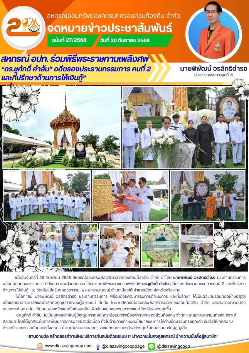 [ข่าวกิจกรรม] ป.พิพัฒน์ฯ พร้อมคณะสหกรณ์ฯ เข้าร่วมพิธีพระราชทานเพลิงศพ ดร.ชูศักดิ์ คำล้น