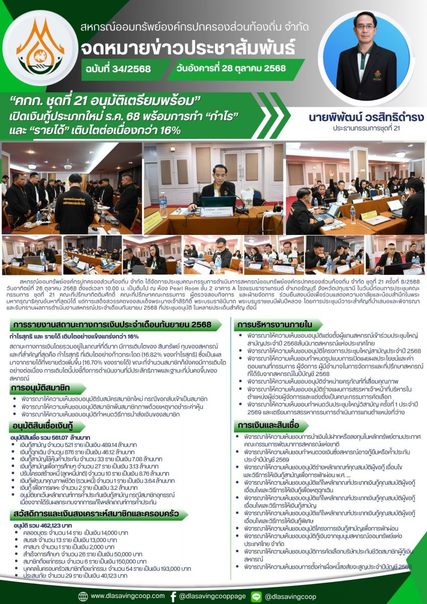 [มติเด่น สอ.อปท.] คกก. ชุดที่ 21 อนุมัติเตรียมพร้อม! เปิดเงินกู้ประเภทใหม่ ธ.ค. 68