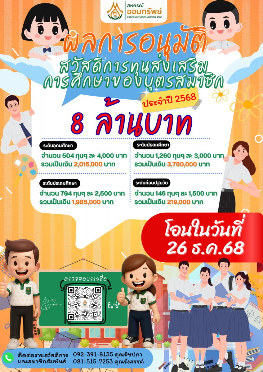 การให้ทุนส่งเสริมการศึกษาของบุตรสมาชิก ประจำปี 2568