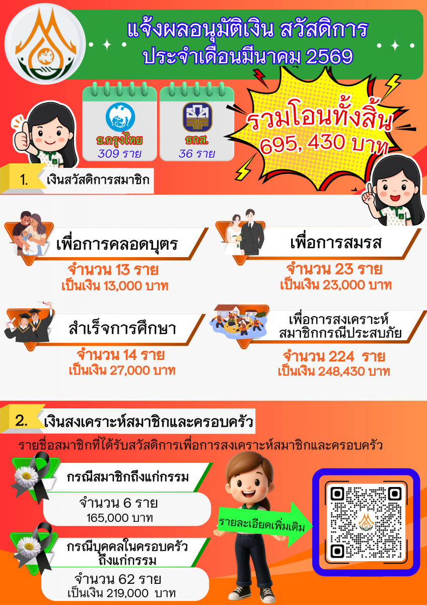 ประกาศผลการอนุมัติเงินสวัสดิการสมาชิก