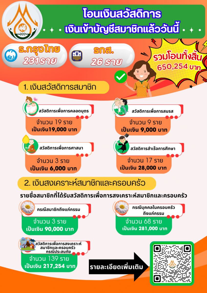 ประกาศผลการอนุมัติเงินสวัสดิการสมาชิก