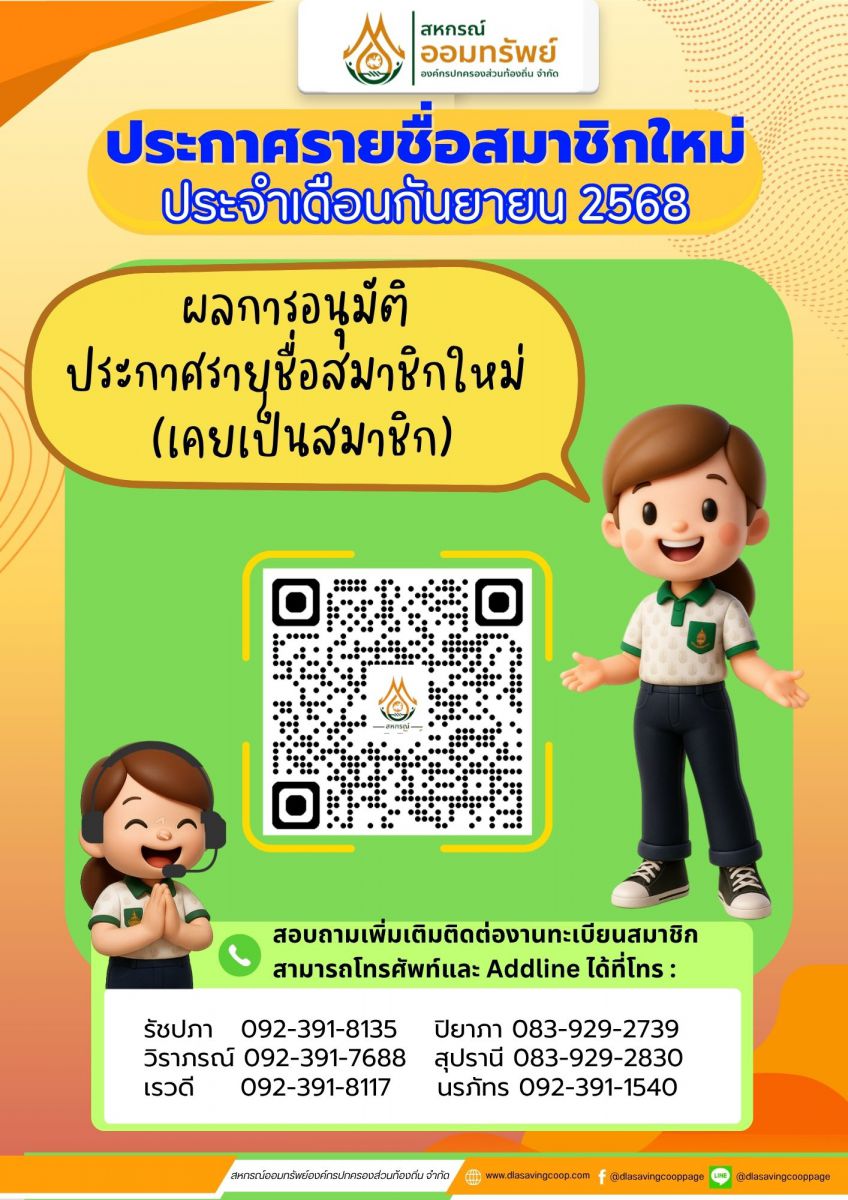 ประกาศรายชื่อสมาชิกใหม่ที่ได้รับความเห็นชอบให้เป็นสมาชิกสหกรณ์