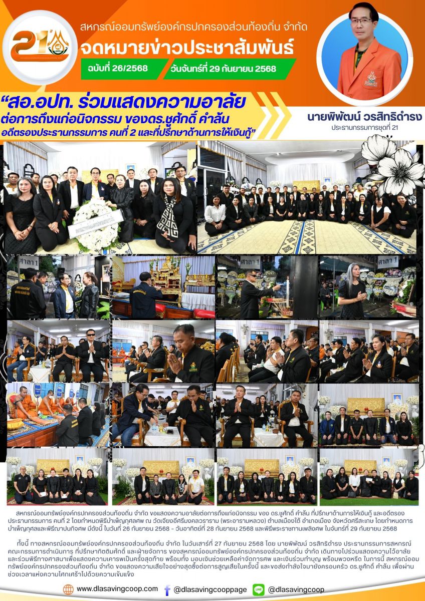 [ข่าวกิจกรรม] สอ.อปท. ร่วมแสดงความอาลัยต่อการถึงแก่อนิจกรรมของ ดร.ชูศักดิ์ คำล้น