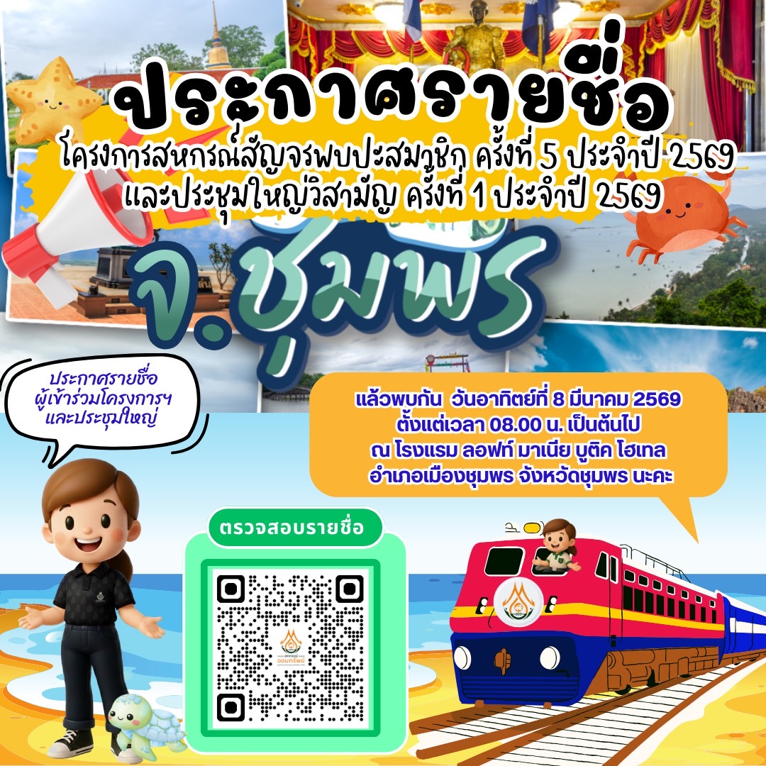 เรื่อง รายชื่อสมาชิกผู้แจ้งเข้าร่วมโครงการสหกรณ์สัญจรพบปะสมาชิก ครั้งที่ 5 ประจำปี 2569 และประชุมใหญ่วิสามัญครั้งที่ 1 ประจำปี 2569